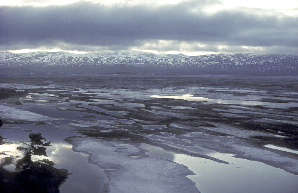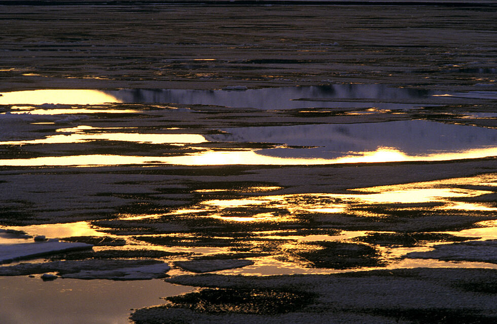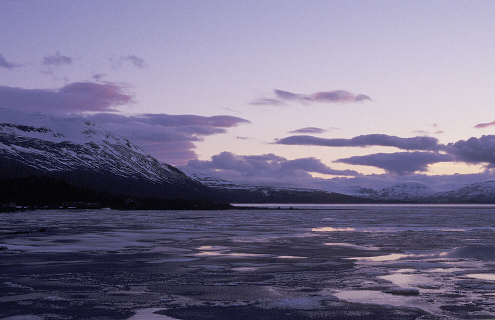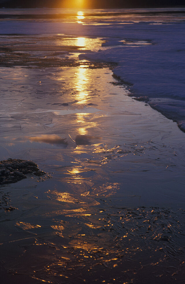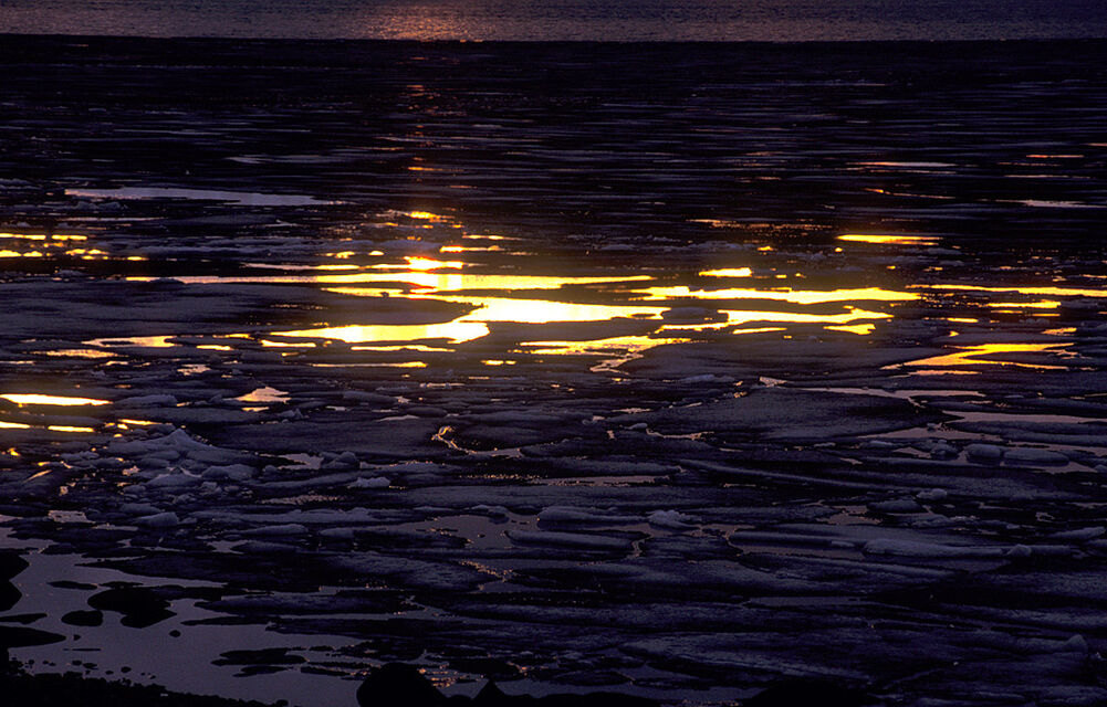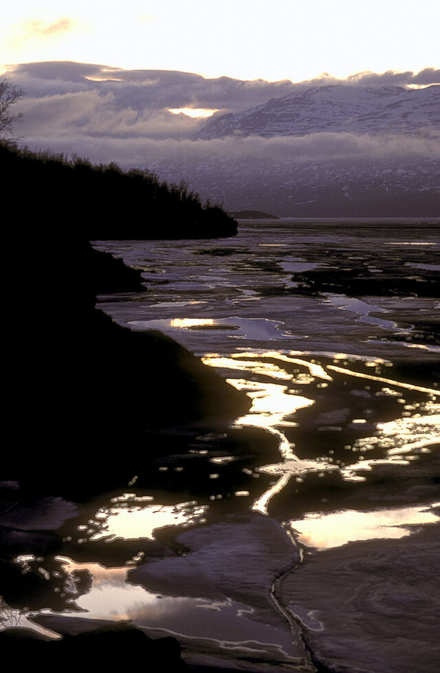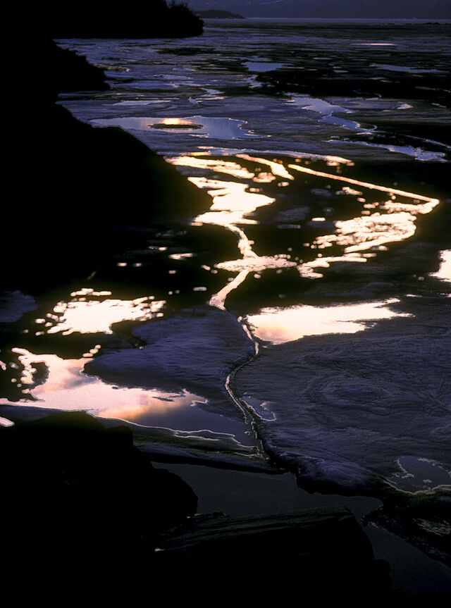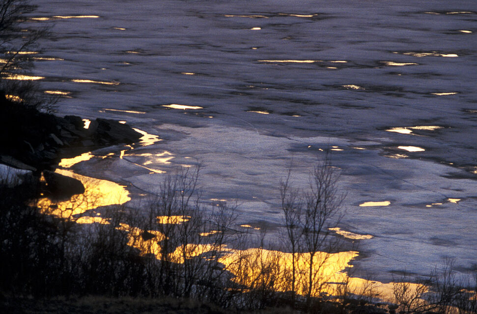 250 kilometer norr om Polcirkeln är frostens och isens rike. Isblommor på kalla fönster, is som kapslar in växter och grenar och skapar en skog av is. Isgrottor, isformationer och is som sakta försvinner och glimmar i midnattssolen sken. Vattnet som dyker upp under isen och det bubblar och lever och äter upp isen som sakta, sakta försvinner för att återuppstå nästa vinter.
